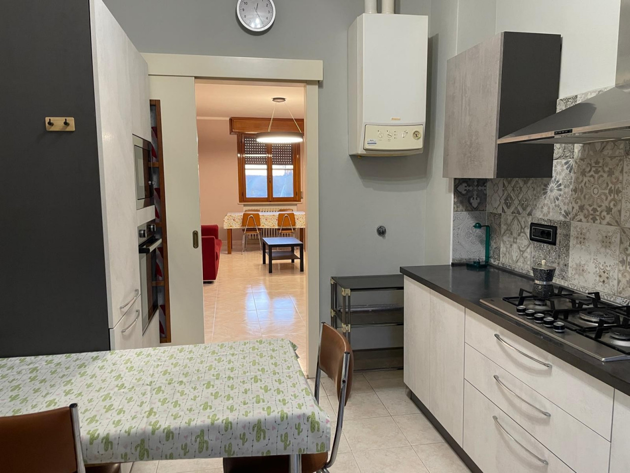 Trilocale a 5 minuti da Alma, nella vicina via De Gasperi. Sono presenti nell’appartamento due camere da letto (entrambe matrimoniali ma di grandezza diversa) e un bagno, presenza di wifi, cucina completamente attrezzata anche con lavastoviglie, balcone. E’ al quarto piano con ascensore, presente asse, ferro da stiro e stendino, lavatrice e asciugatrice. Ogni studente avrà la sua camera privata e condividerà con l’altro i luoghi comuni. Non bisogna intestarsi utenze, il prezzo che è di 580 euro per camera dimensione media e 620 per camera dimensione grande tutto compreso (spese condominiali, spese energetiche, pulizie scale, wifi ecc). Termoautonomo e climatizzato. Richiesta una mensilità di cauzione che sarà restituita alla riconsegna dell’appartamento, previo controllo. Prevista quota per pulizia finale.