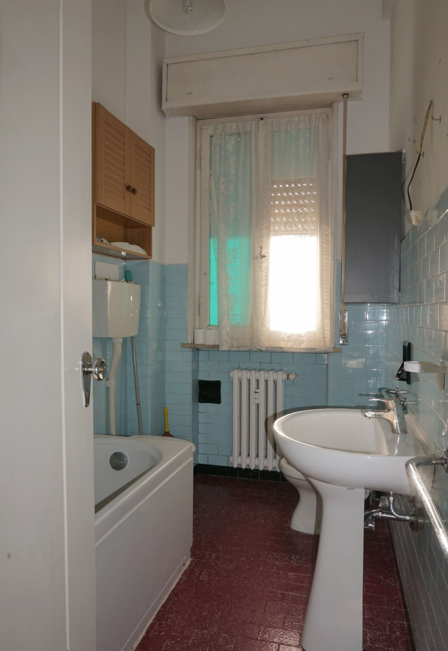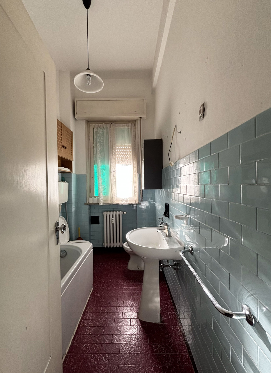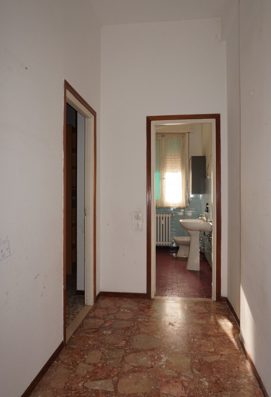 Un disimpegno notte collega alla camera matrimoniale e ad un bagno finestrato con vasca. Gli spazi attuali possono essere ottimizzati per creare ambienti funzionali e moderni.