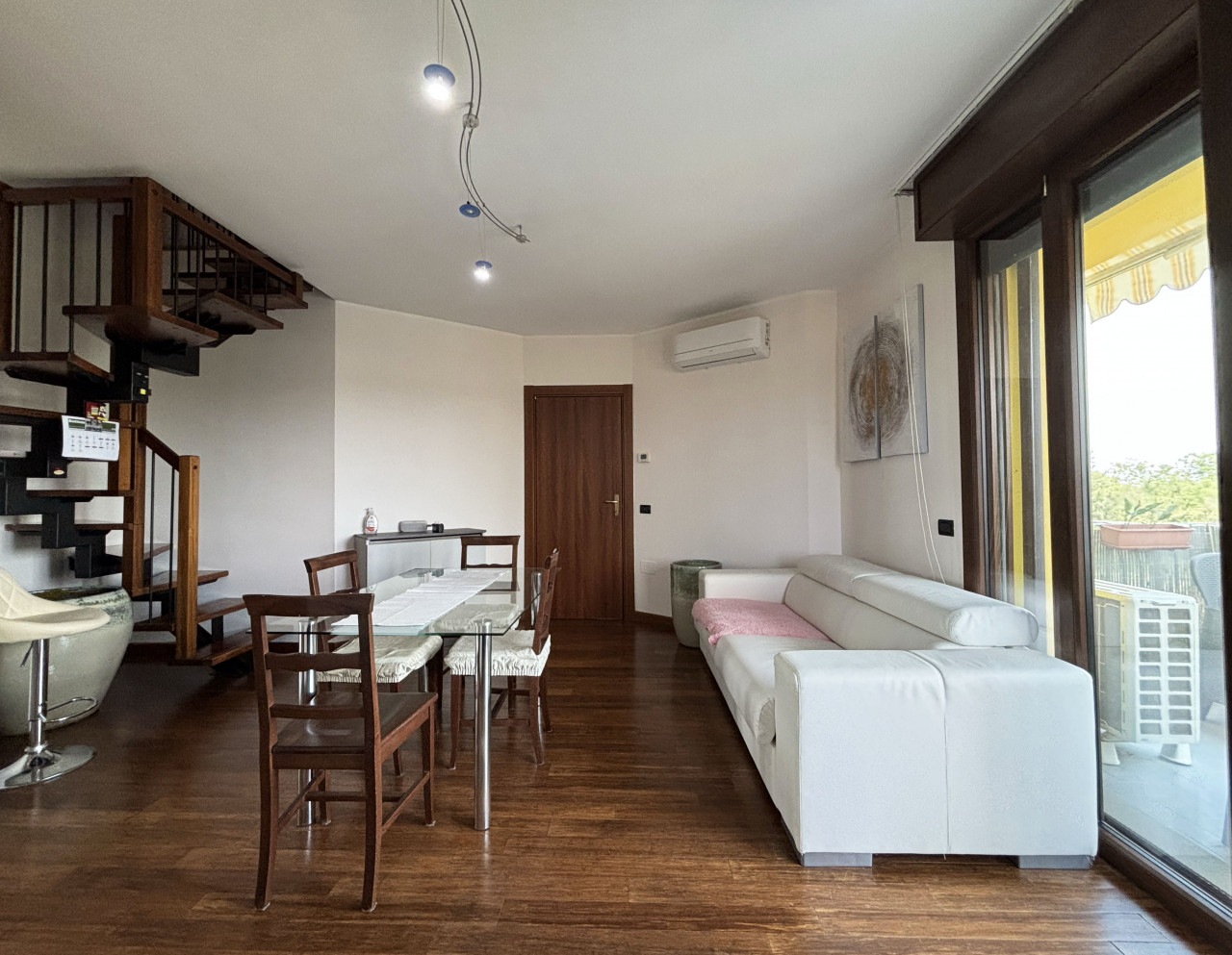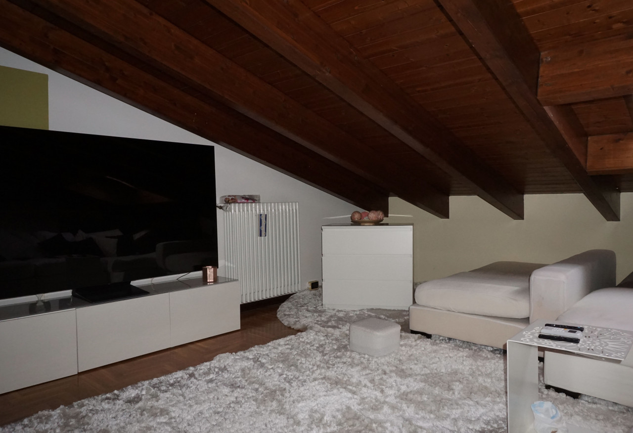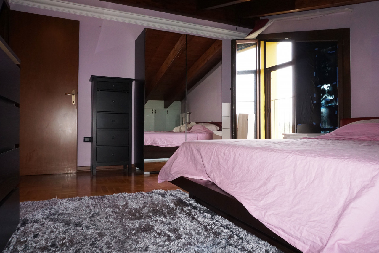 Una elegante scala in legno conduce al piano mansardato dove vi attende una seconda area living riservata ed intima, perfetta come studio o sala hobby; qui è presente anche la camera matrimoniale padronale progettata per ottimizzare ogni spazio disponibile, insieme ad un secondo grande bagno completo di vasca.