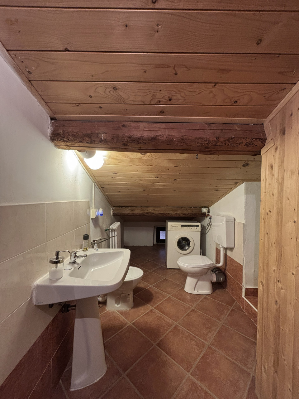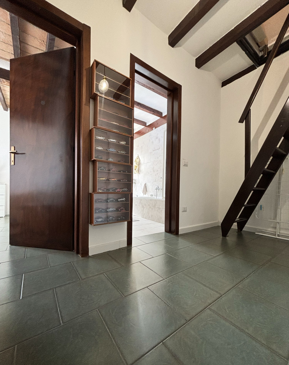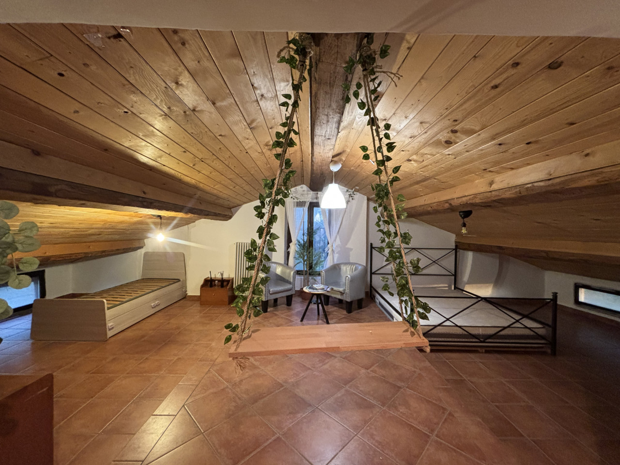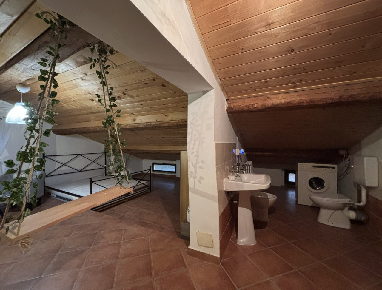 Una scala in legno porta al piano sottotetto dove troverete tre ambienti versatili con un’altezza massima di 2,20 metri; questi spazi possono essere adattati secondo le vostre esigenze: sala TV, studio, palestra, ripostiglio sono solo alcune delle possibilità offerte.