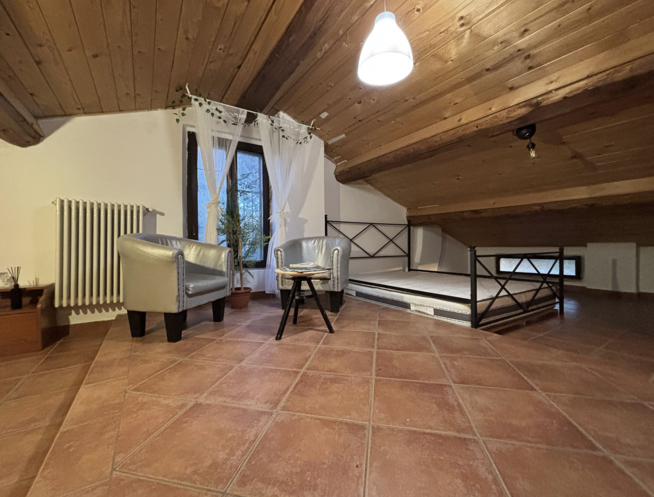 L’appartamento si sviluppa su due livelli al primo piano di un piccolo contesto condominiale che offre spese di gestione contenute. Entrando nell’immobile, sarete accolti da una zona living con travi in legno a vista, conferendo calore e carattere all’ambiente. La cucina separata è funzionale e ben attrezzata, mentre l’ampio disimpegno conduce alla camera matrimoniale spaziosa e ariosa. Il bagno principale dispone di vasca, ideale per momenti di relax.