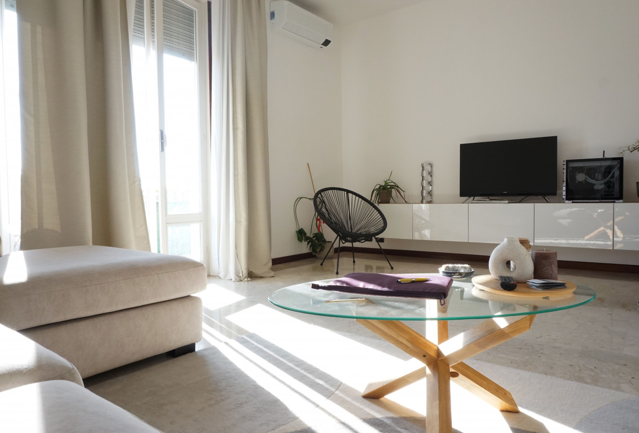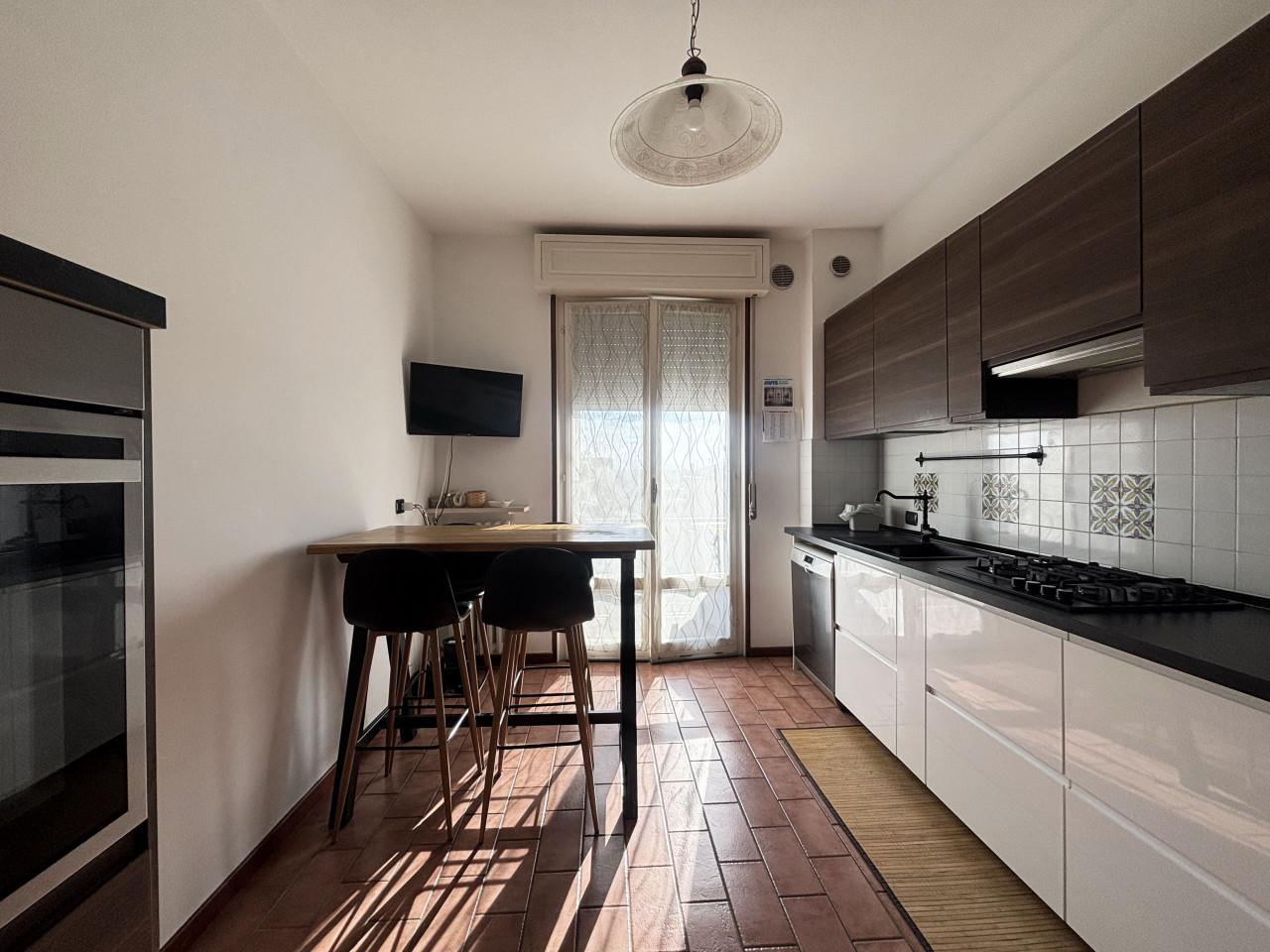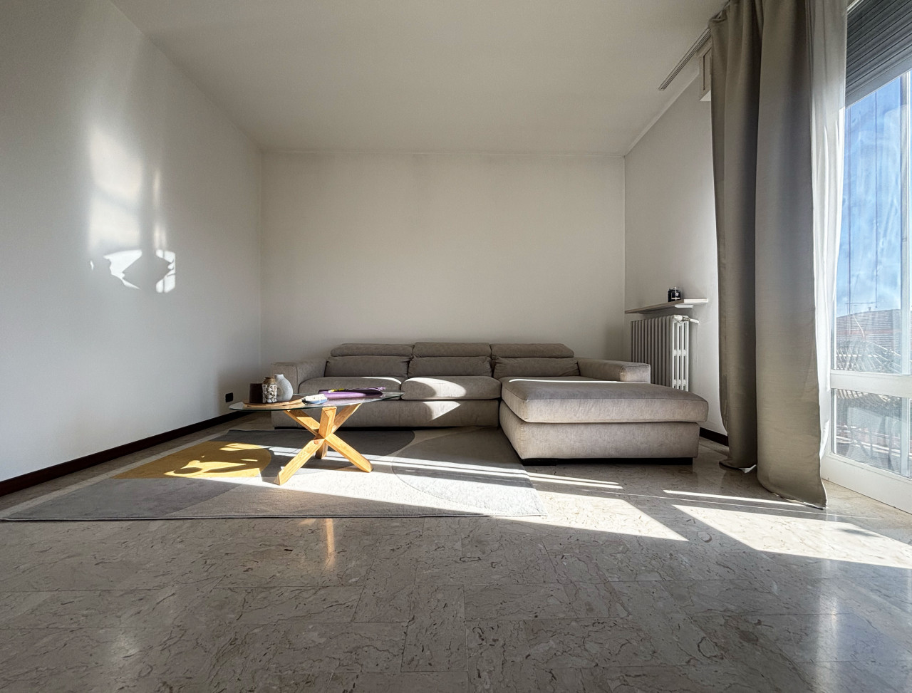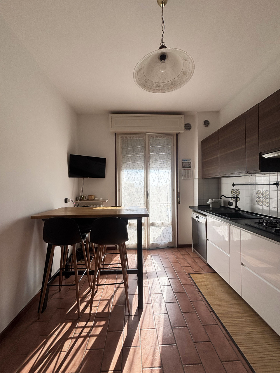 Situato al terzo piano di una palazzina dotata di ascensore, l’appartamento offre un’accogliente cucina abitabile con accesso diretto a un comodo balcone e una pratica zona dispensa/ripostiglio. L’ampio soggiorno è perfettamente illuminato grazie alle grandi finestre che conducono anch’esse al balcone comunicante con la cucina.